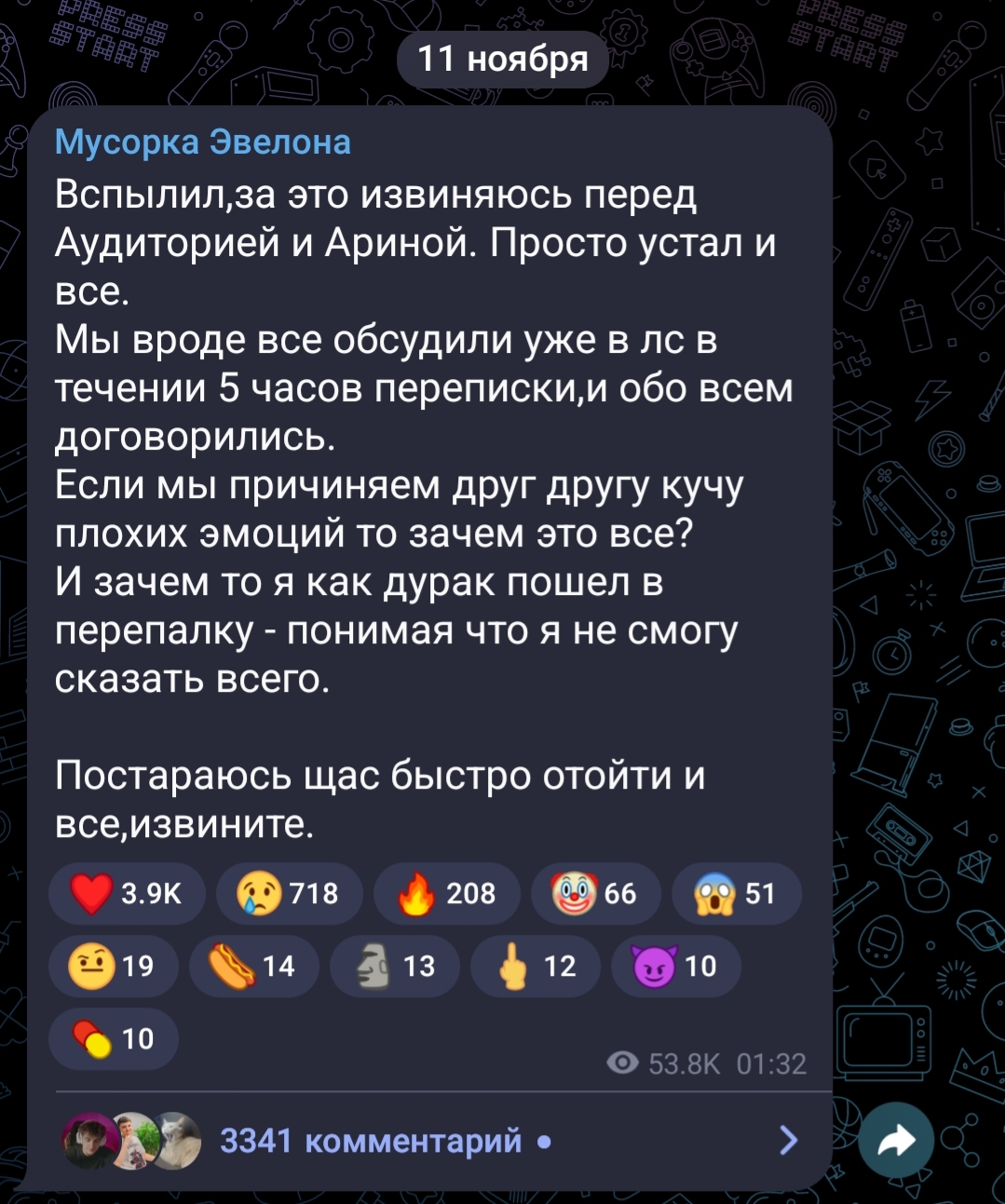 эвил просто извинился за то, что на стриме сгорел на неё, он не написал что будет с ней дальше общаться с ней, а вы тут перевернули это в то, что они теперь снова друзьяшки. Все, это конец их взаимодействий.