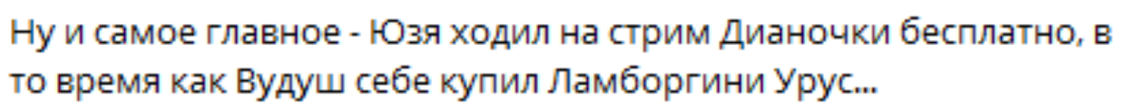 Юза - настоящий творец, а стримеры типа Вудуша, которые гребут бабки и за спиной его буллят, делают всё только ради денег и захотели его отцепить от кормушки