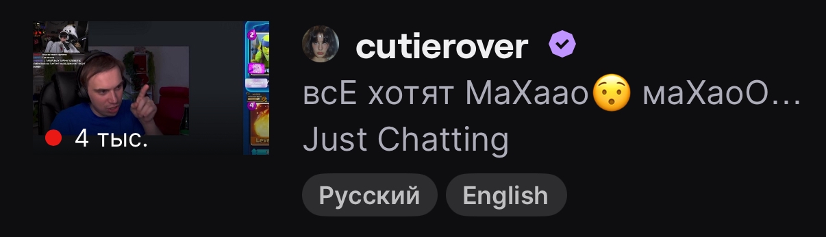 а на твиче есть хоть 1 стримерша, которая поднялась не за счет подсоса к кому-то, не за счет шипа или каких-то конфликтов, а вот чисто сама? мне в голову приходит только какая нибудь Карина Стримерша и Тендерли