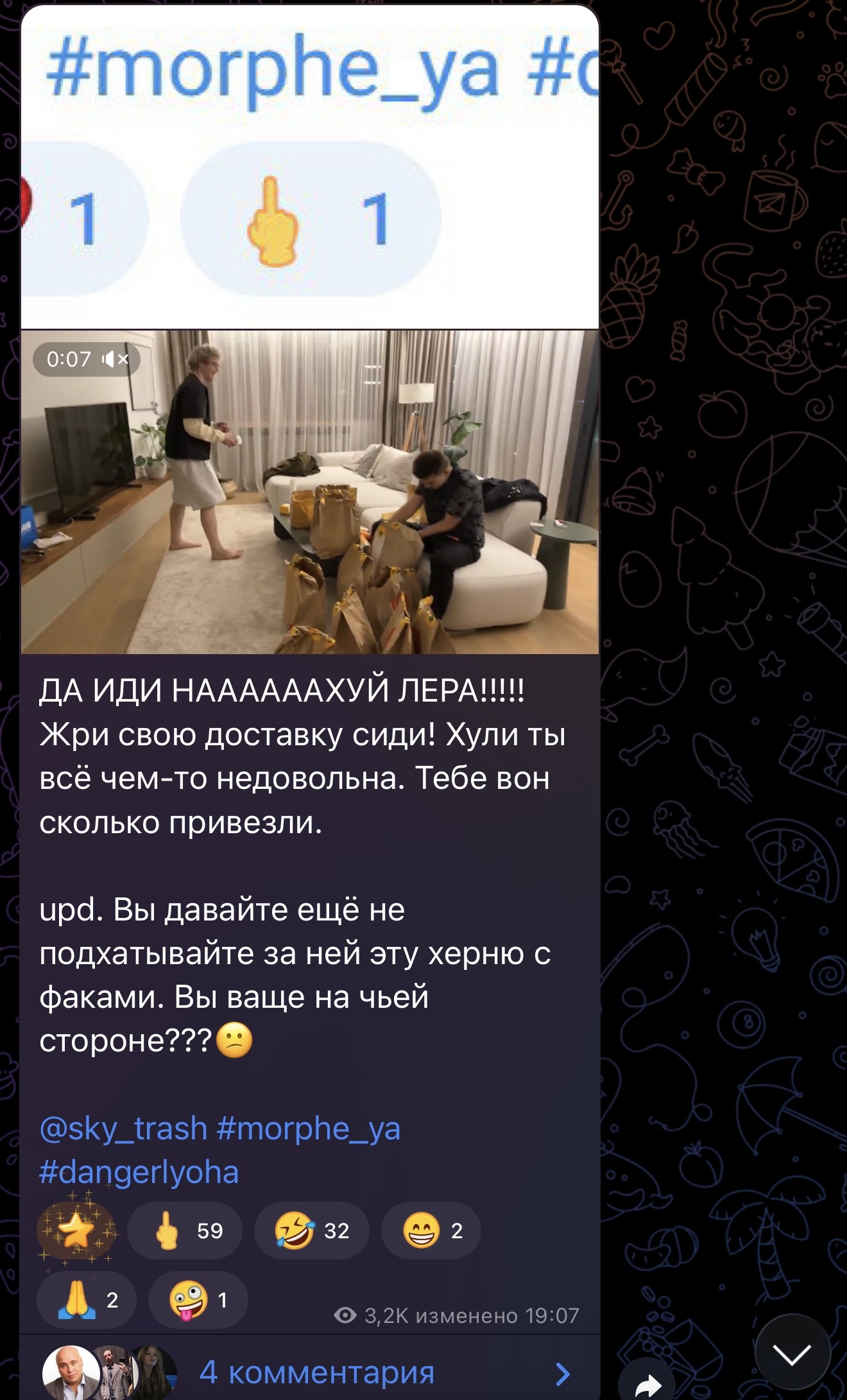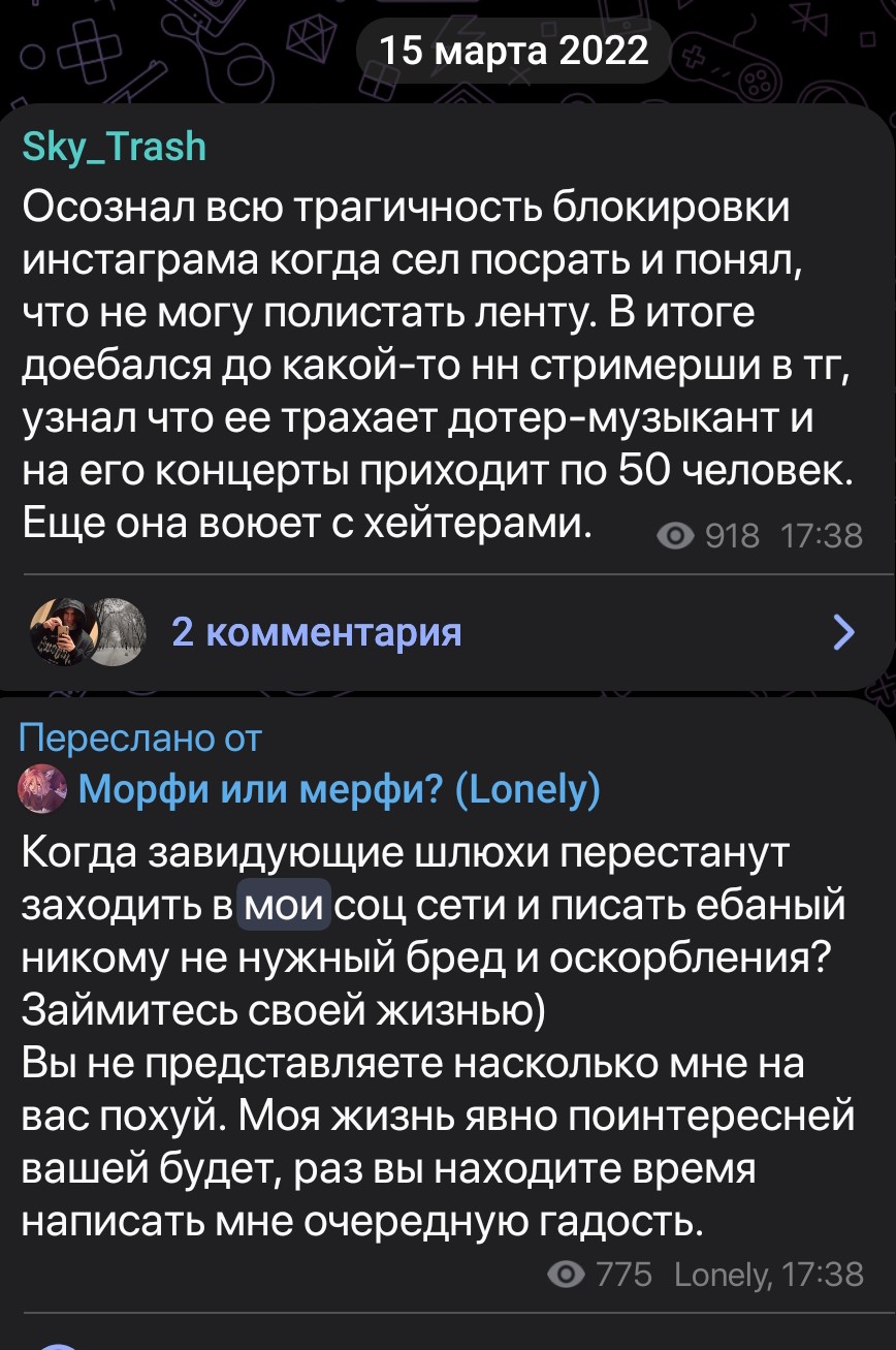 а почему все молчат про то что вадим и наташа общаются в тг, и вадим уже все подробности про ситуацию с ролексами знает потому что наташа зареванная ему писала и он ей помог, и еще они друг другу приятного полета желали. то есть у них такое же общение как с морфилиной происходит, значит ли это что-то