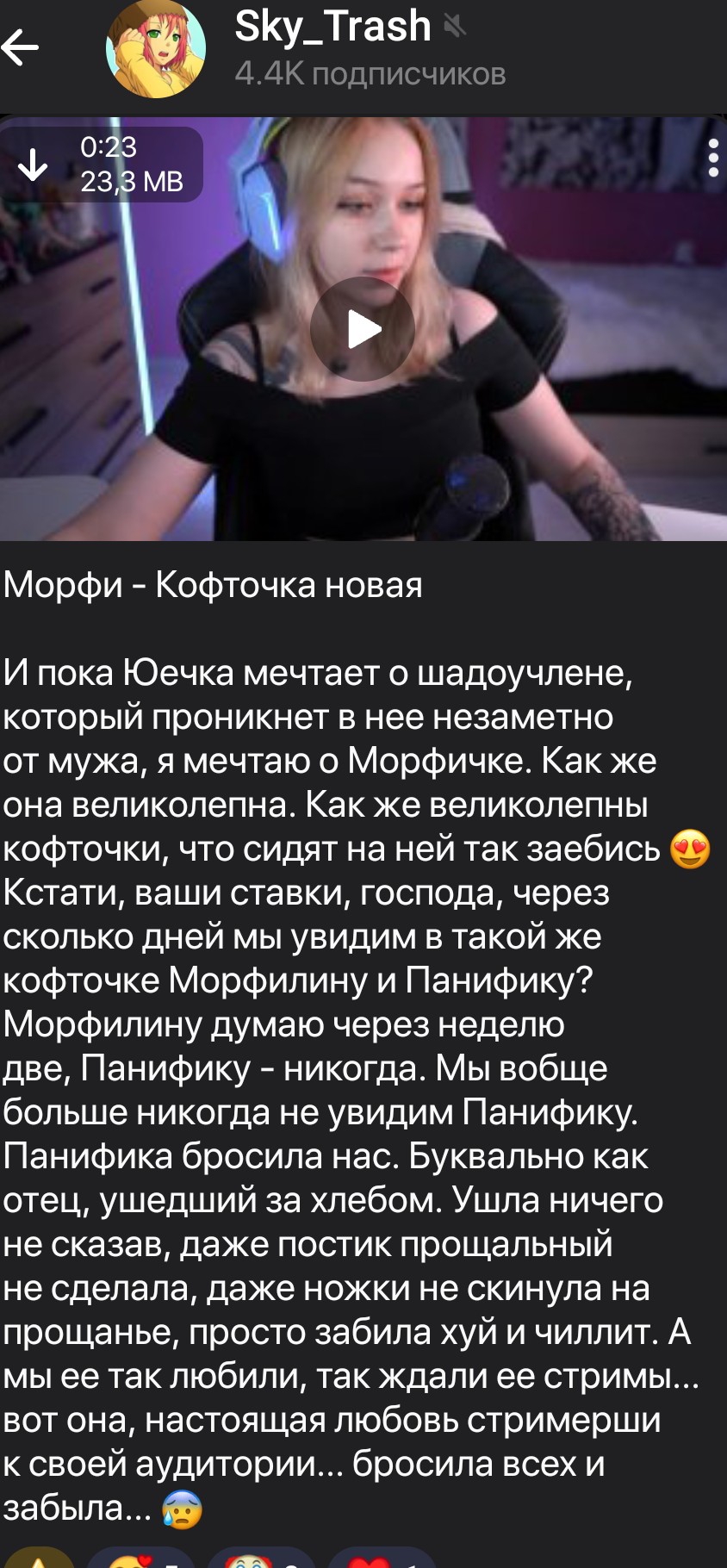 Итак.. Давайте расставим точки над i и установим кого Блебу aka Курскому Мэру удалось совратить и потрахать из стримерш: 1) Морфия 2) Коря мц 3) Жанна 4) Кутировер