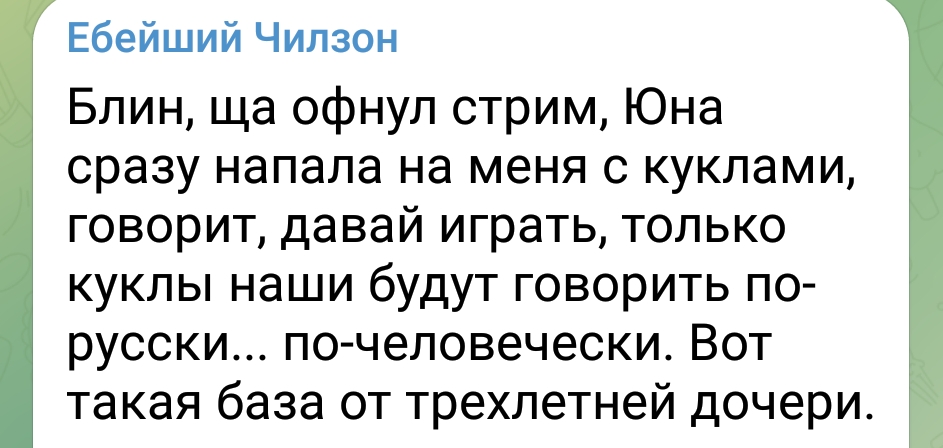 >>25566055 Ты что несешь еблан? Похуй на арадауна но алкаш первый начал пздеть на арадауна. Один раз напиздел второй раз напиздел, теперь человек рассказывает как было, а не фантазии алкаша который увел ферби у него кстати.
