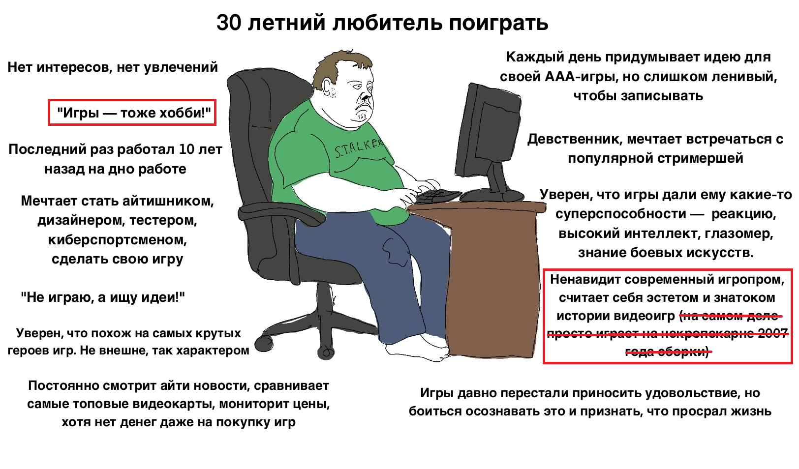>>25570436 они просто все еще живут в своем манямирке, где женщины не играют. На самом деле достаточно на твич зайти, чтобы глянуть сколько жирух витуберш во всякие ммо задротят или кинцо от сони. Может во всякое старое дерьмо они и правда не играли и не играют, но jrpg, ммо современные и кинцо это прям их ниша. Скуфы лучше бы задумались норм ли им разделять интересы с жирухами