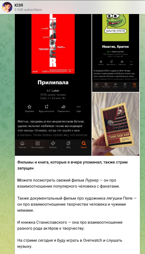 бля вот бы отдельный канал по телеку где крутят одного только мудисана 8:00 - 13:00 золотая классика обзоров 13:00 - 21:00 золотая коллекция стримов 21:00 - 00:00 нарезка острых моментов, для тех кто любит погорячее 00:00 - 6:00 - золотая коллекция подкастов и "по шпалам" 6:00 - 8:00 профилактика геморроя