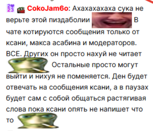 Я в 2012 был тем чмом, который ныл, что люди срут пастами и спамят на всяких сервисах совместного двачерского просмотра фильмов/видосов. Простите меня за это, друзья. Чат форсен изменил моё мнение. Чел буквально создал твич. В свободе рождаются мемы. Поэтому не понимаю Юзю.
