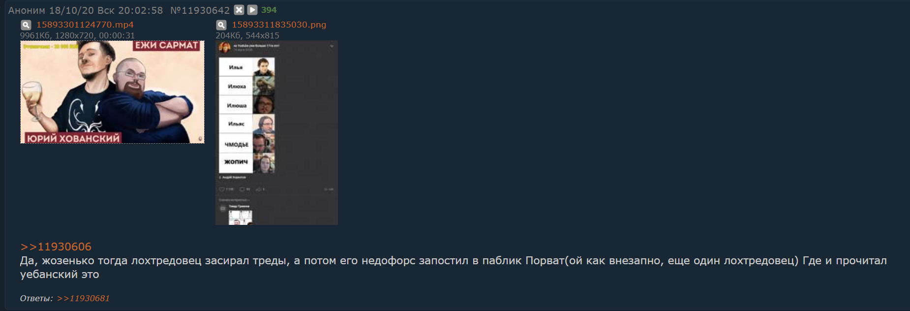 >>25574185 Я доскроллил, увидел, что первое сообщение было около стрима по Владик бруталу, то есть год + 3 месяца. Ты прав, что он в чате Чмодья сидит не с момента форса рыжопич, но я этого не мог знать, потому что в этом говночате не сидел никогда. С другой стороны, в тех чатах, в которых сижу я, этот чел появился в момент форса рыжопич и пукал про то, как она его забанила постоянно. Вопрос закрыт.