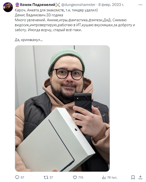 >>25576931 А сейчас думаешь не крутит чтоли? Как-то заходил, поздоровался, написал пару сообщений, отошел минут на десять. Вернулся, мое сообщение висит, думаю круто в пасту превратили. А это блядь, оно и есть, изначальное сообщение, только бот три раза ссылки проспамил. И это на хайповой кодзимовщине.
