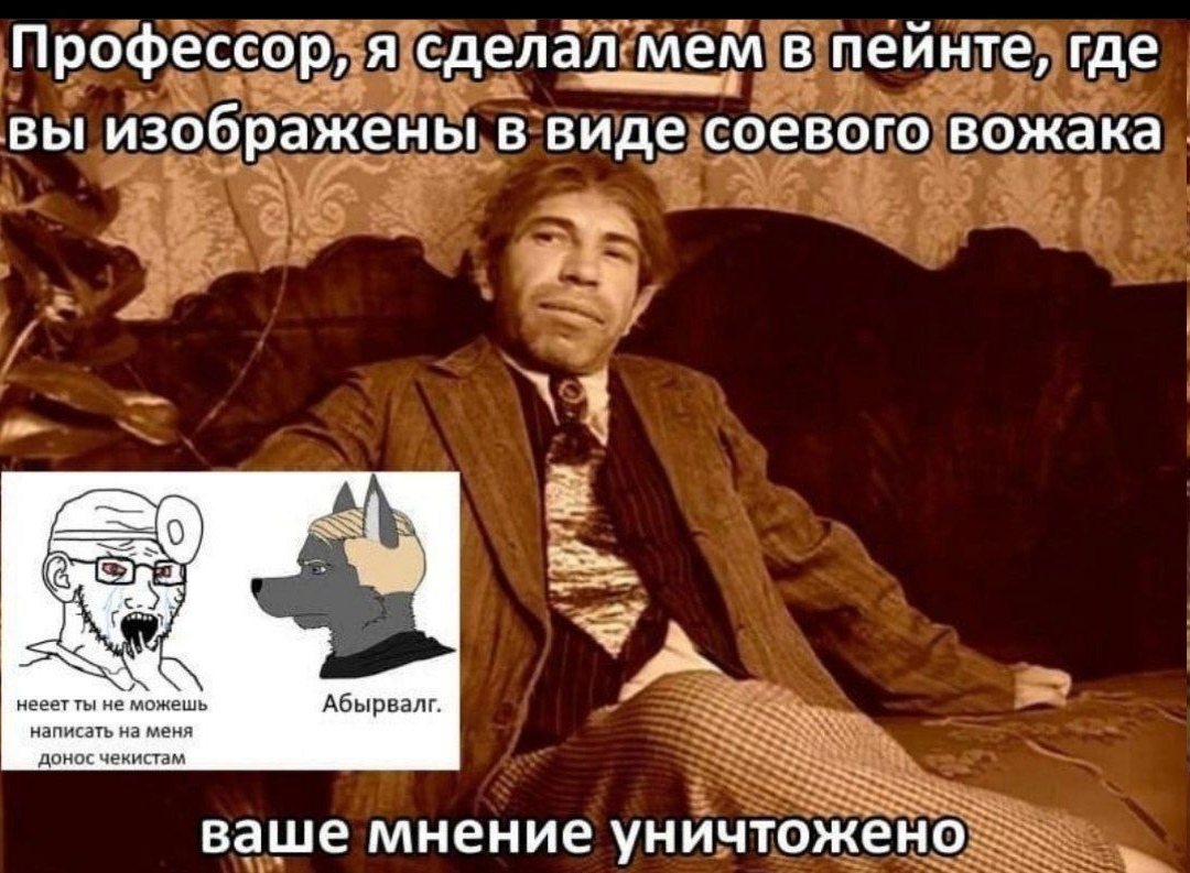 >>25583855 > А мог бы ты сам себе не писать Нет >тебя кто то обидел? Мне просто интересны мотивы. Меня обижает, существование чемоданов в одном таймлайне вместе со мной. Можешь что-нибудь сделать с этим ?