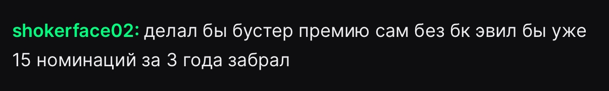 >>25589991 Насчёт ИРЛ факт,в мультигейминге побольше шансов в Денжера вкидывали а вот в Харизме 80% в него кидают его даже когда не было в номинации вспоминали и вписывали от себя но с его гражданством хуй что ему дадут как и остальным украинцам