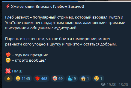 >>25590936 Ну так он чисто стример и вообще никак не прокачивает свою медийку, а у твича всё еще довольно локальная аудитория. Офк челы подписанные на вписку не шарят за стримеров, кроме какого нибудь Бустера