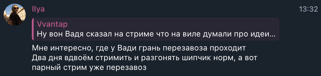 Не в первый раз замечаю как он сначала заботится о ней без стримов, а потом высмеивает это на стриме. Странная хуйня, если стесняешься как-то показывать заботу зачем вообще говорить об этом