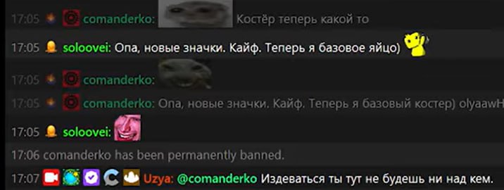 >>25671154 Выступлю адвокатом чата Юзи: он был своеобразным. Как и сам Юзя. Вроде бы, в нём был токс, но не такой открытый, были и постоянные пасты, но "добрые", скажем так, пасты. Никак у Жопича во времена зиг и открытых оскорблений. Было много локальных приколов, которые за пределами воспринимались всрато, да, но - это была своя экосистема, которая жила вне самих стримов Юзи. У Ласки до 22 года тоже нечто подобное было, пока он окончательно не поехал на политике, но чат у Ласки был гораздо токсичней и злей(даже если фактически 80% чаттерсво могла сразть у Юзи, просто правила такие негласные были в поведении) В принципе, можно упростить до такой формулы: чат Ласки до 22 года - это чат Жопича, и многие в чате Ласкача были забанены у Мэда, т.к. тогда он ещё держался за чат сабов и его модеры анально карали, а сам чат Ласки ещё делится на уже чат Арравудуса. Причём, чат Арравудуса - это уже в свою очередь забаненные как у Мэддисона, так и у Ласки челики.