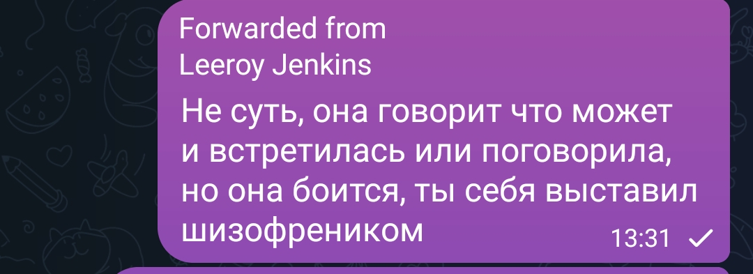 >>25608501 Ну так ее симпы точно также пургу разводили, когда у носа было общение с кем-то. А из-за слов или действий наташки зачем им ныть, королева может делать что хочет, у нее были такие моменты, что жировки давно бы в дурке оказались от тряски