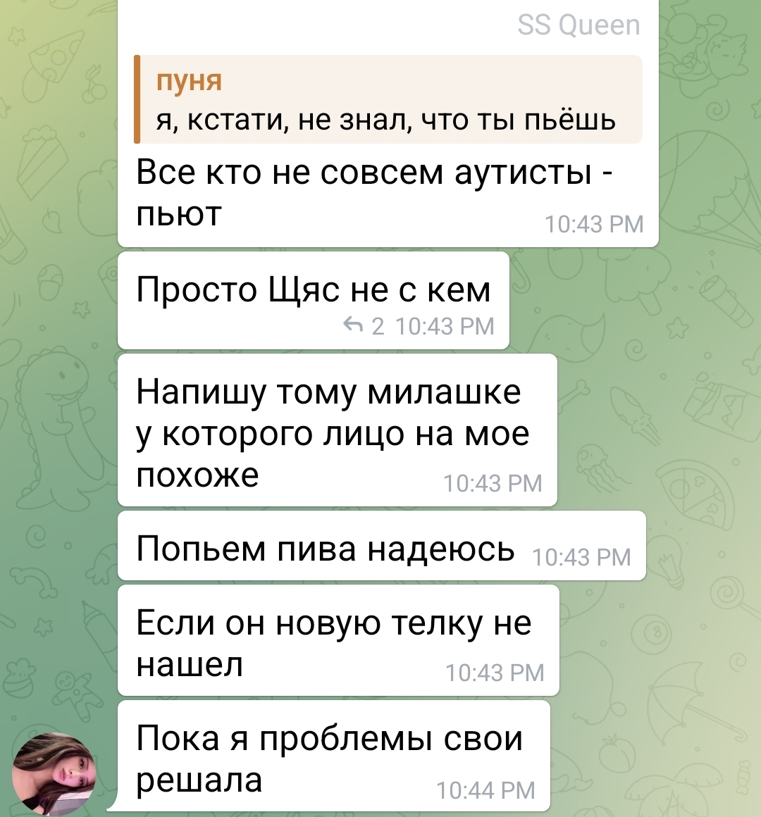Он про форсера поста "как же хочецца тяночку хоспаде", помню этот пост, с девкой на пикче. Мы, хронические лиственники, Луис на стендапе про таких людей говорил: "А представьте себе, что на планете живут люди, которые не занимаются сексом никогда, они просто моют свои гениталии, а потом умирают..."