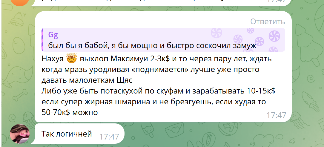 >>25646131 Ну вот Даша и дождалась, когда ее бородатая уродливая мразь "поднялась" и лутает для нее по 2-3к бачей. Супер жирная шмарина конечно могла бы иметь и 10-15к, но видимо уже брезгует, да и возраст не тот
