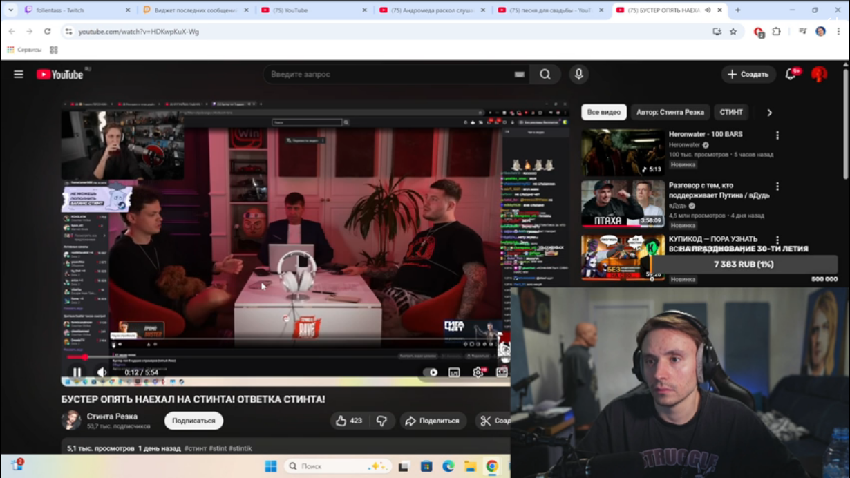 Босса потрясывает от того, что его игнорят моментами) На серьёзном ебало че-то там пытается обсуждать на ТВИЧЕ, мгагагаг. Лучше пусть помолчит, он неинтересен. Интересны только отдельные личности, поэтому их и смотрят. И никто не будет смотреть его хуйню, когда бабки кончатся на стримеров.