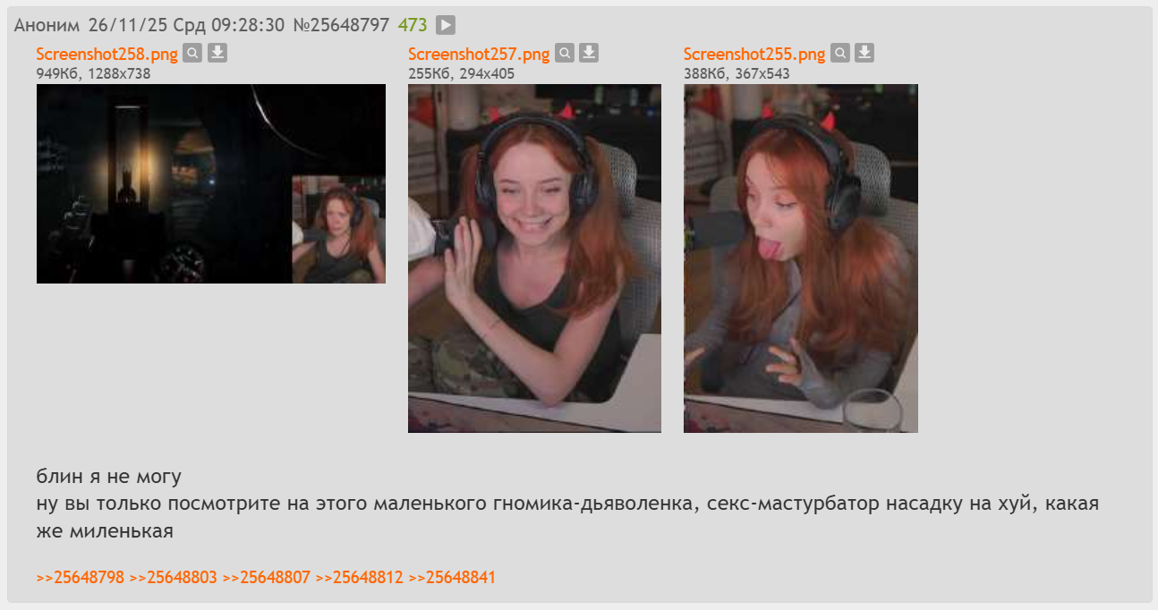 >>25608150 → >>25625980 → >>25626138 → Давно не заходил к чуханке, но увидев, что в прошлом треде творится решил посмотреть сегодня ее стрим, ну все так, как тут писали, увидел ее тряску, посмеялся, как я понял там про ее пиздеж все давно в курсе да? Просто смеются с этой дурочки? Или пытаются не замечать? Я просто не верю что можно не видеть очевидных вещей, как она манипулирует в стиле "он шиз, чат смотрите на него насмехайтись над ним", надеясь что симпы начнут ее защищать, уводит тему или вместо конкретики пытается вывести на эмоции, ну не зря тут пишут что она гнилая пиздаболка которая ебется с бывшим, сегодня я в этом убедился. Почему эта дура еще удивляется что кто-то хочет знать с кем она ебется? Она же медийная личность, для стримерш это обыденный вопрос разве нет? Короче произвела она на меня впечатление реально больной на голову пиздаболки с гнильцой и синдромом Наполеона.