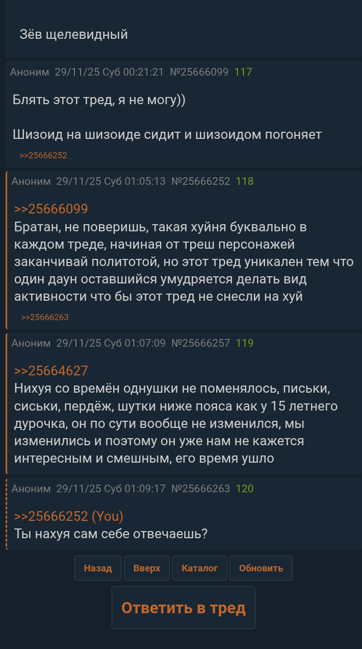 >>25663853 >А в чем смысл чухне иметь тарелочника импотента Как гепатитная пизда говорила "У всех баб есть запасной вариант" Вот вовощ и есть этот вариант пока хуй получше не появится, проверенный временем надежный хуй на который всегда можно присесть в любое время, который не сольет, всегда поможет, придет на стрим, а в случае ебанутого шиза в ирл если, что защитит. Может для тебя вовощ это уебище, но для чуханки, это еще хороший вариант после бывшего инвалида. >долго не продлится Вот тут ты пиздец как ошибся, это длится еще после их "расставания и по сей день", здоровых нормальных отношений конечно нет, а вот то что время от времени ебутся это факт и это полностью устраивает обоих, в ином случае один из них давно бы кого-то нашел. >разгон их отношений выгоден лишь чухне тк ей кажется что блядей корежит с этого Настолько блядей корежит, что чуханка трясется от донатов про воваща а ее симпов эта тема конкретно заебала. Где ты выгоду для нее увидел? Она каждый раз повторяет "ВАС НЕ ДОЛЖНО ЕБАТЬ С КЕМ Я ЕБУСЬ". Ей выгодно когда ей очко вылизывают начисто, слепо поддерживают во всем и в тупую верят, переходя по рекламным ссылкам не задавая лишних вопросов. А теперь посиди подумай что за хуйню ты высрал