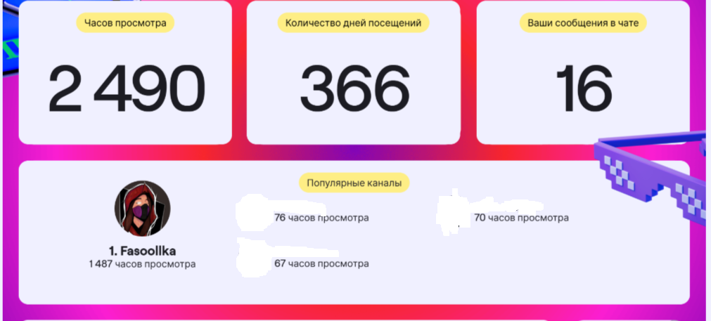 Она скинула, но мб это не ее стата, а с др канаоа, мразолька мб. В первый раз когда спросили и она в чате отписалась, там был явный пиздешь, ибо назвала она 6 ников, а не топ 5 как там отобрадается. Просто с головы взяла наверное)) Думаю там в топе номанз будет и линанеон не отображается у нее, хотя она у нее дастаточно долго зависает на стримах, явно больше 22х часов в год)) Так что да, думаю это стата либо мразольки либо левого акк