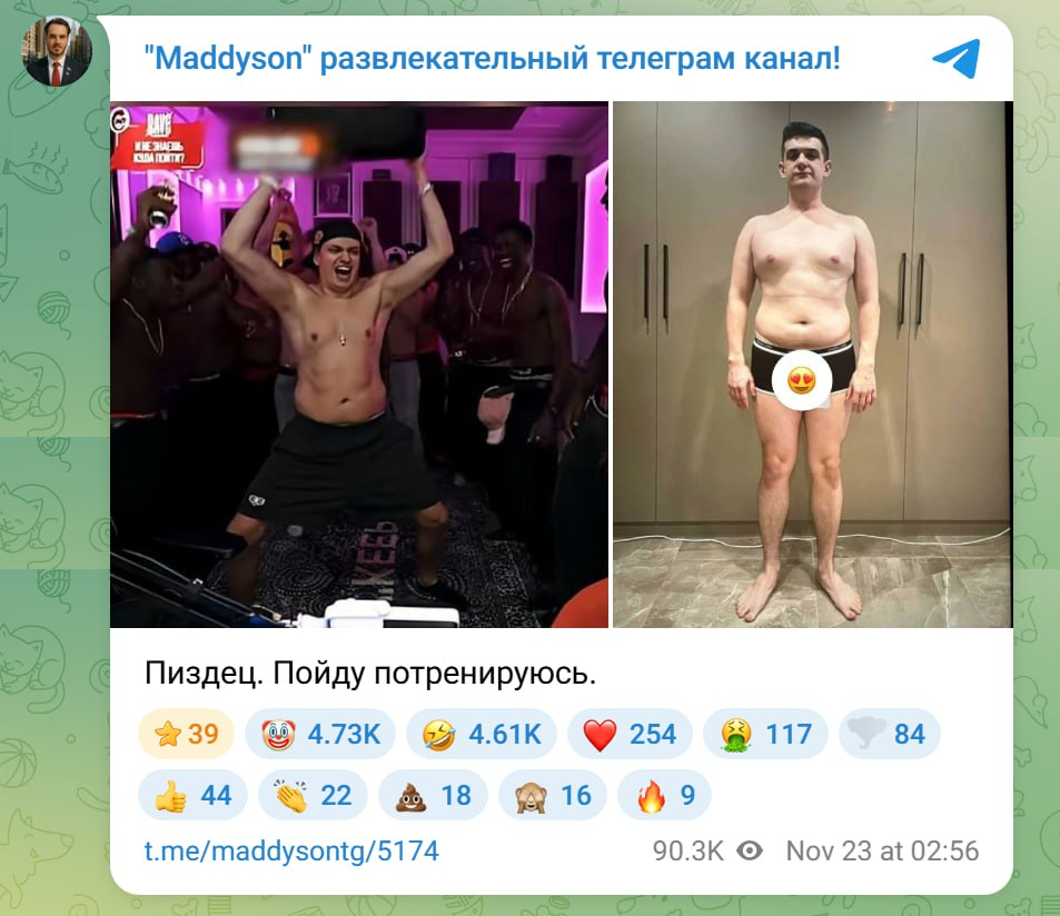 Я мечтаю, что когда-нибудь кто-то сделает картинку, где вместе фемки прифотошопит Кало Норда, вместе Путина Илюху Мэда, а надпись изменит на "Мужчина, которого больше всего боится Мэддисон". Я бы сам сделал, но у меня криво получится, а хочется, чтобы красиво.