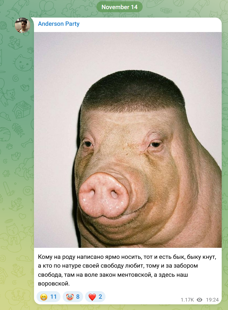 вольно такой унылый далбаёб кста пиздец был всегда и пранки его высер неоригинальный зато он так кичился постоянно и самоотсосом занимался топа он звезда большого театра нахуй вот у валакас с пеной смешные пранки были в отличии от это жырной свиноты бездарной тупорылой сука