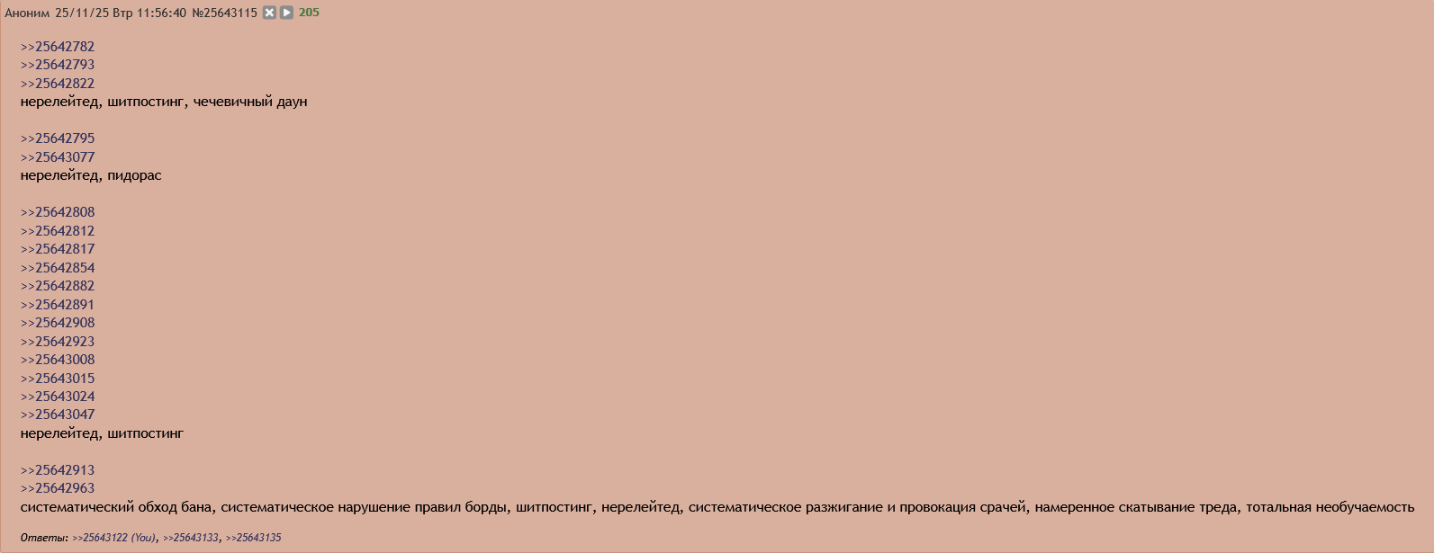 >>25643360 ну спит еще модер и это говно минимум часа 3 не трогают. от выделения списком в треде он не обоссытся и не убежит под себя. а 3 репорта из 3 я уже отправил. пишет "вы уже отправляли жалобу" может ваще не придти, у нас часто и порнуха висит и просто вайп трапами может остаться в треде спокойно