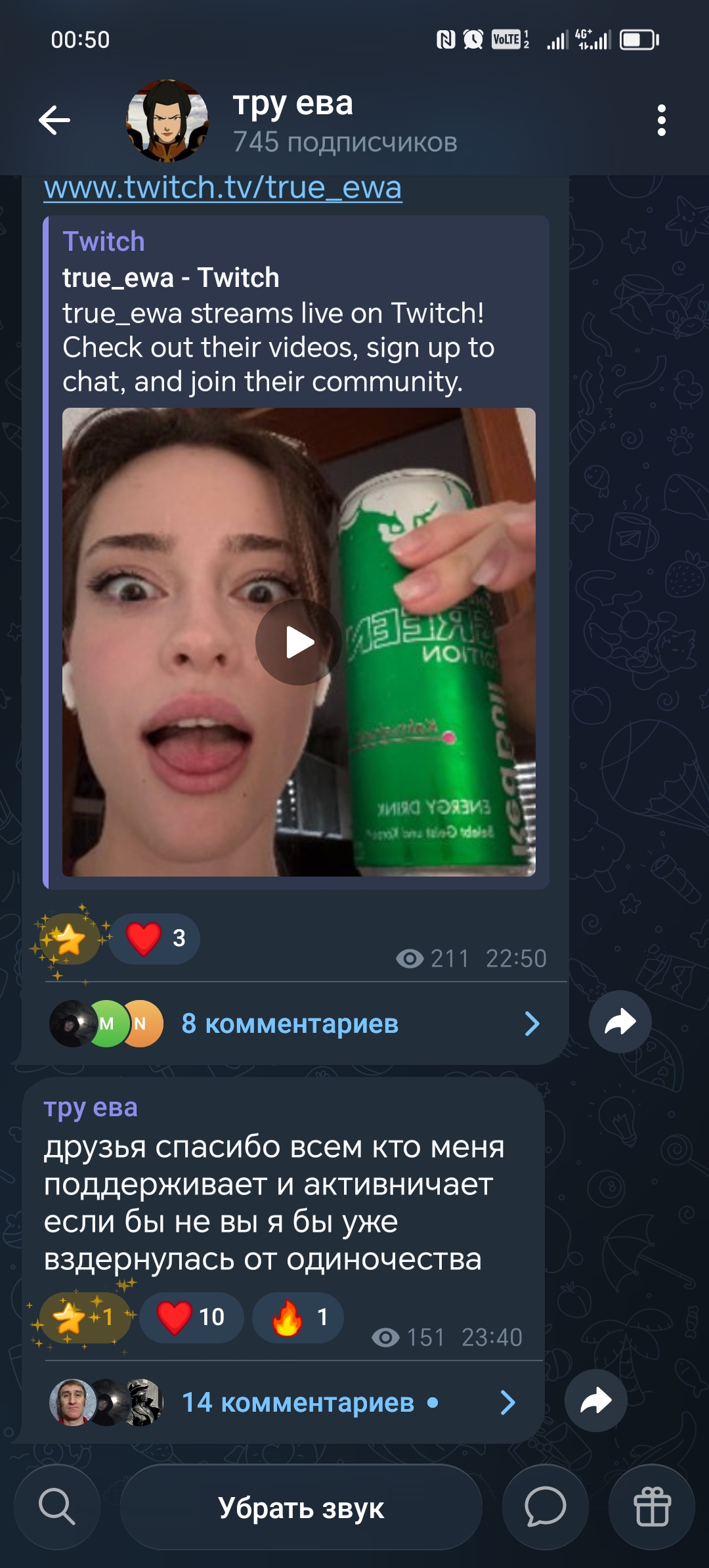3) Наташа. С Наташей как обычно ничего интересного, в 4-5 утра кучу кружков выложила во второй тг, рассказывала чем занималась все дни, и судя по всему она ложится очень поздно и просыпается только под мажор. Это означает, что они скорее всего не общаются с Вадимом, абсолютно разный режим, когда она просыпается он уже занят на мажоре, а когда она свободна он спит.