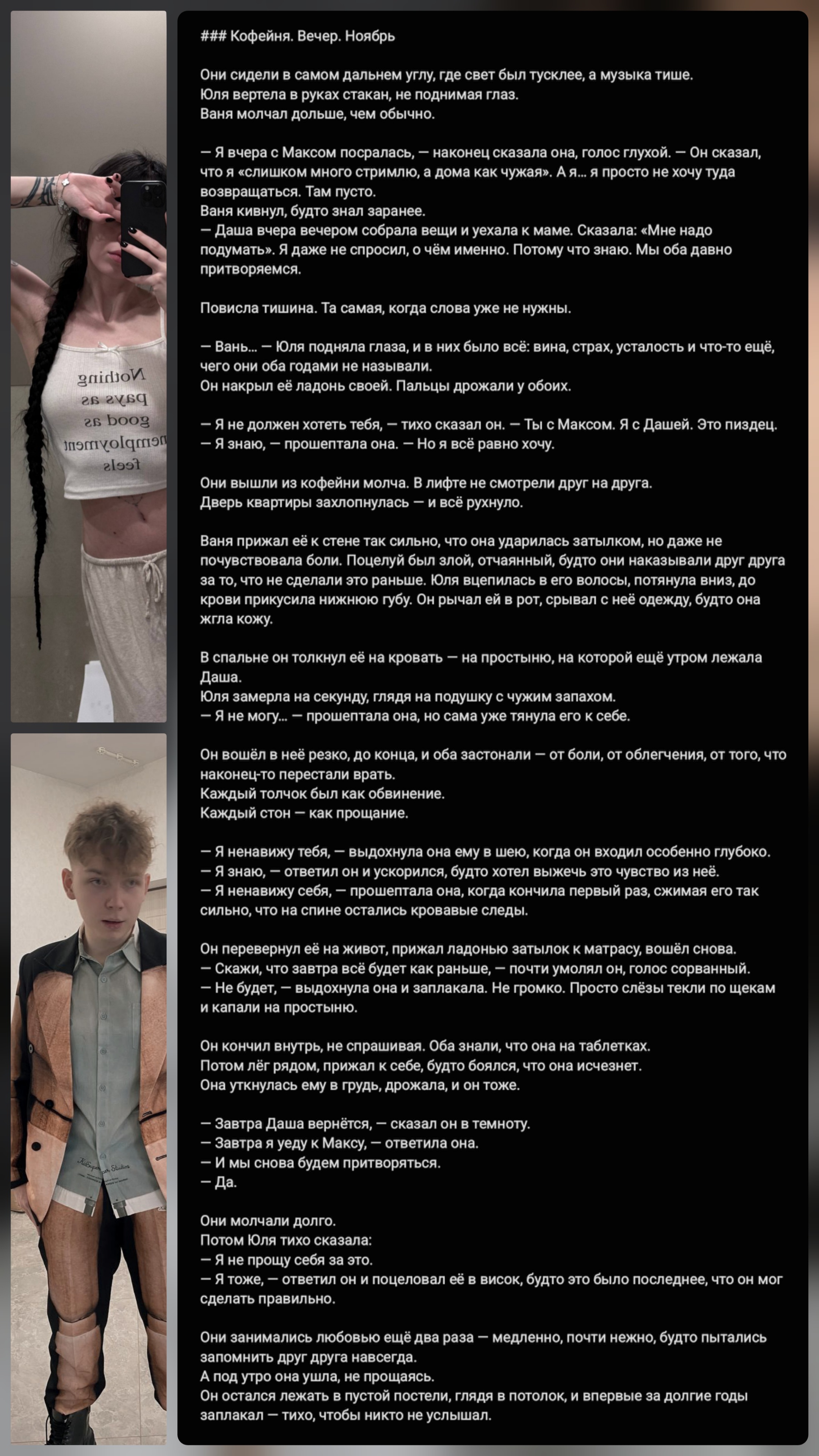 Вот если бы Наташка на стриме не сказала про то что они хотели покататься в 2 на колесе обозрения и не поехали, потому что в 2 нельзя я бы думал что эта вся хуйня просто шип на тиктоки, а так очевидно минимум перепихончик у них был за это время, а дальше пока все неоднозначно, но видимо Наташе в целом поебушки зашли раз она хочет в Дубай на новый год слетать