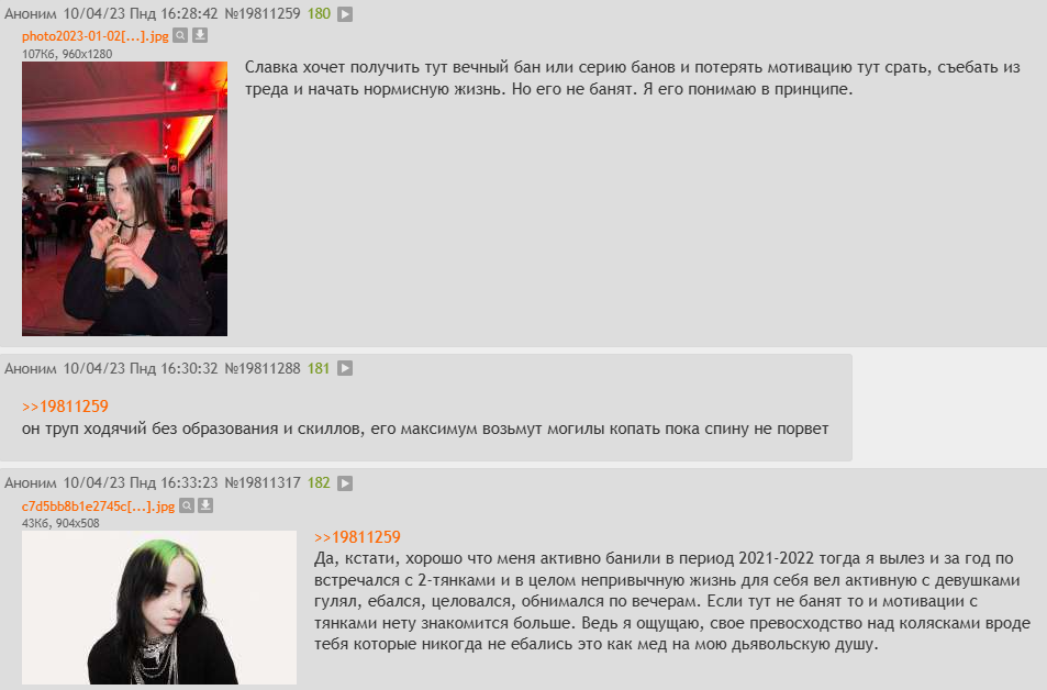 Пердонюха, Скуфовика, и прочих колясок спецом не банят, чтобы они никогда не вылезли к зумершам. А те, кто уходят из треда 100% становятся востребованными у тяночек.