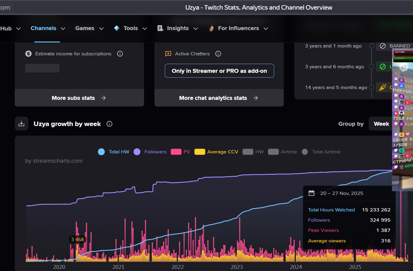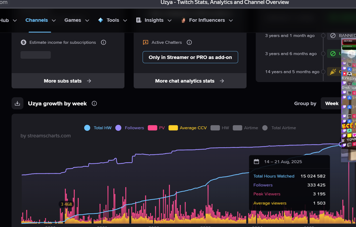 >>25654460 еще один даун не умеет твитч трекером пользоваться, у прадена с 2025 по 700-1к на стримах. Иногда даже до 20к крутили. О каких 200 ты говоришь? Этого даже в 2024 не было толком