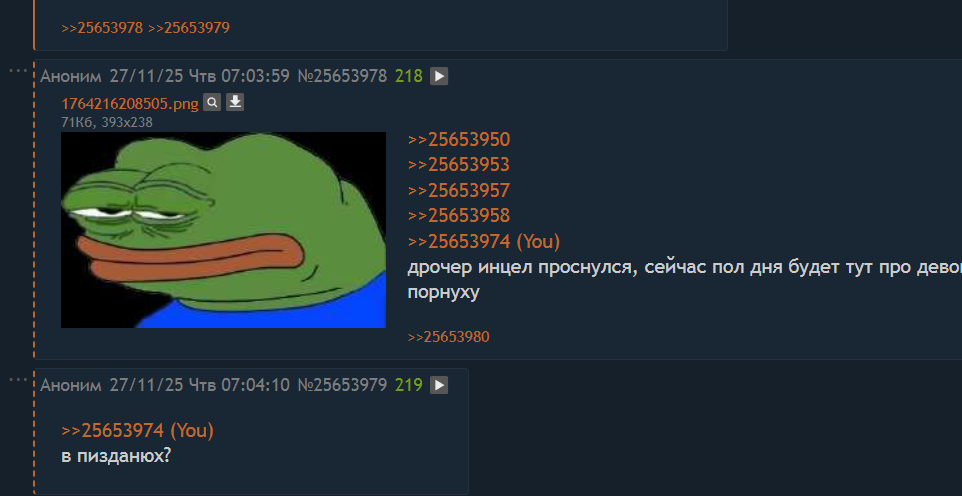 даун треда >>25654500 сам начинаешь это говно сюда нести и доказывать что-то своими неумелыми тейками по типу написал анар и нашло актера, а потом начинаешь визжать, когда тебя тыкают в обсер твой