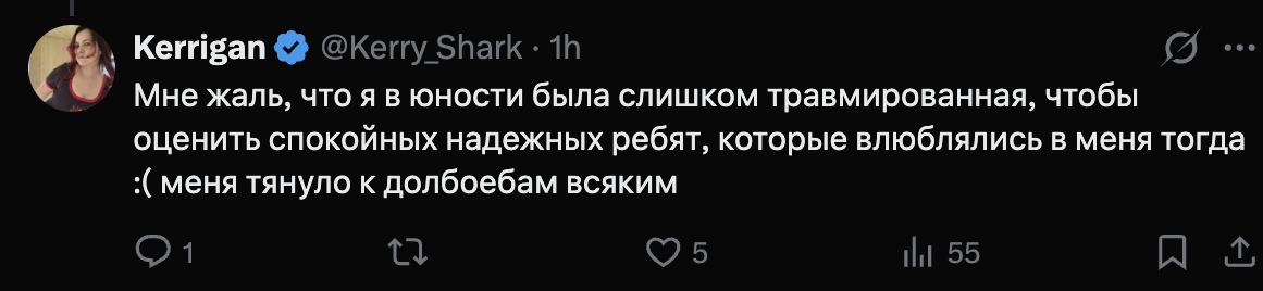 Вот у нее бомбануло кстати не так давно когда кто-то в иксе написал что вы никогда не выглядите моложе своего возраста. НИКОГДА. Сразу же пошел топовый манямирок пожилой бабули о том что все удивляются когда узнают что ей всего лишь 40 ведь выглядит то она на 45-50 хва-хва