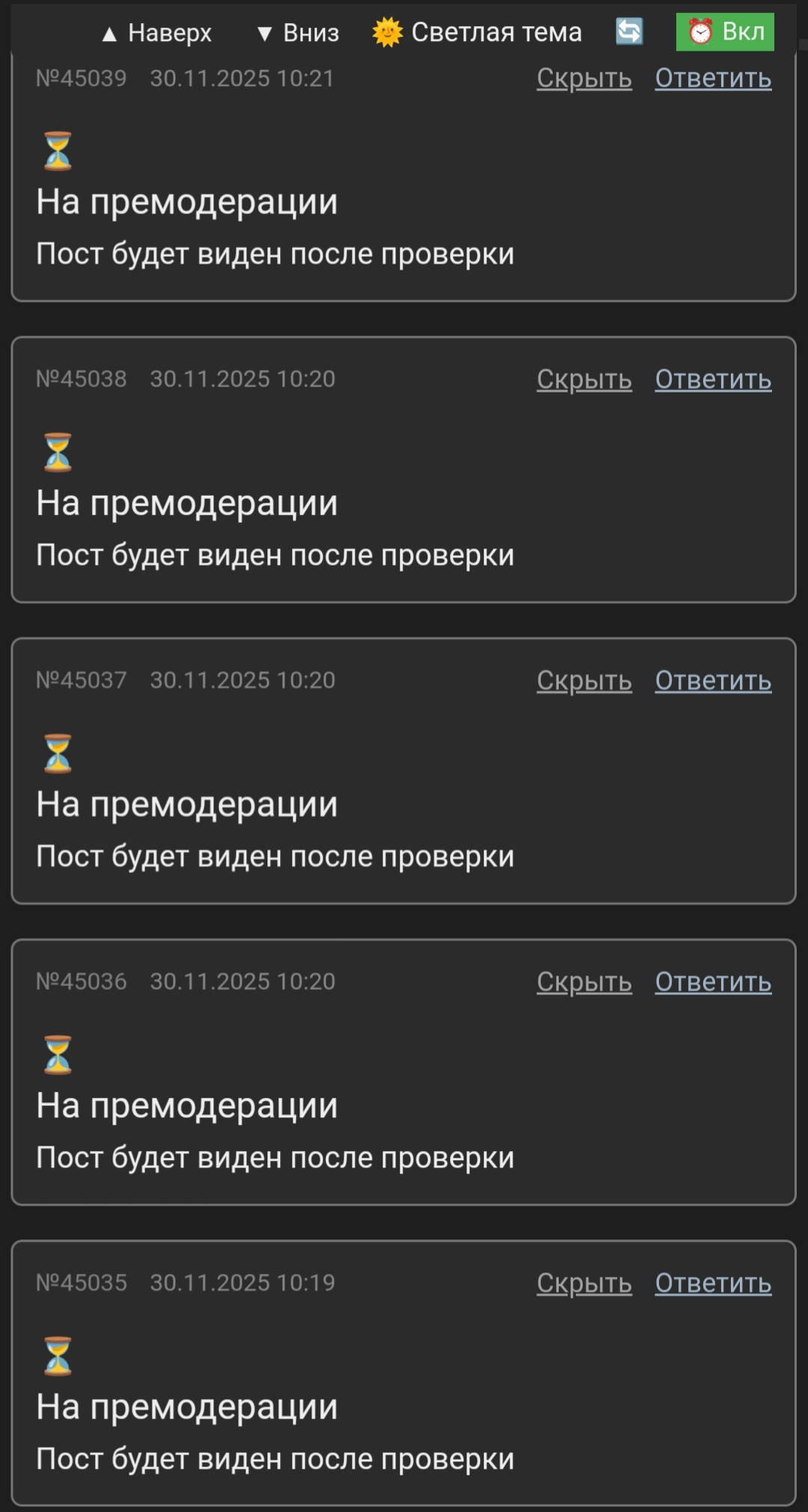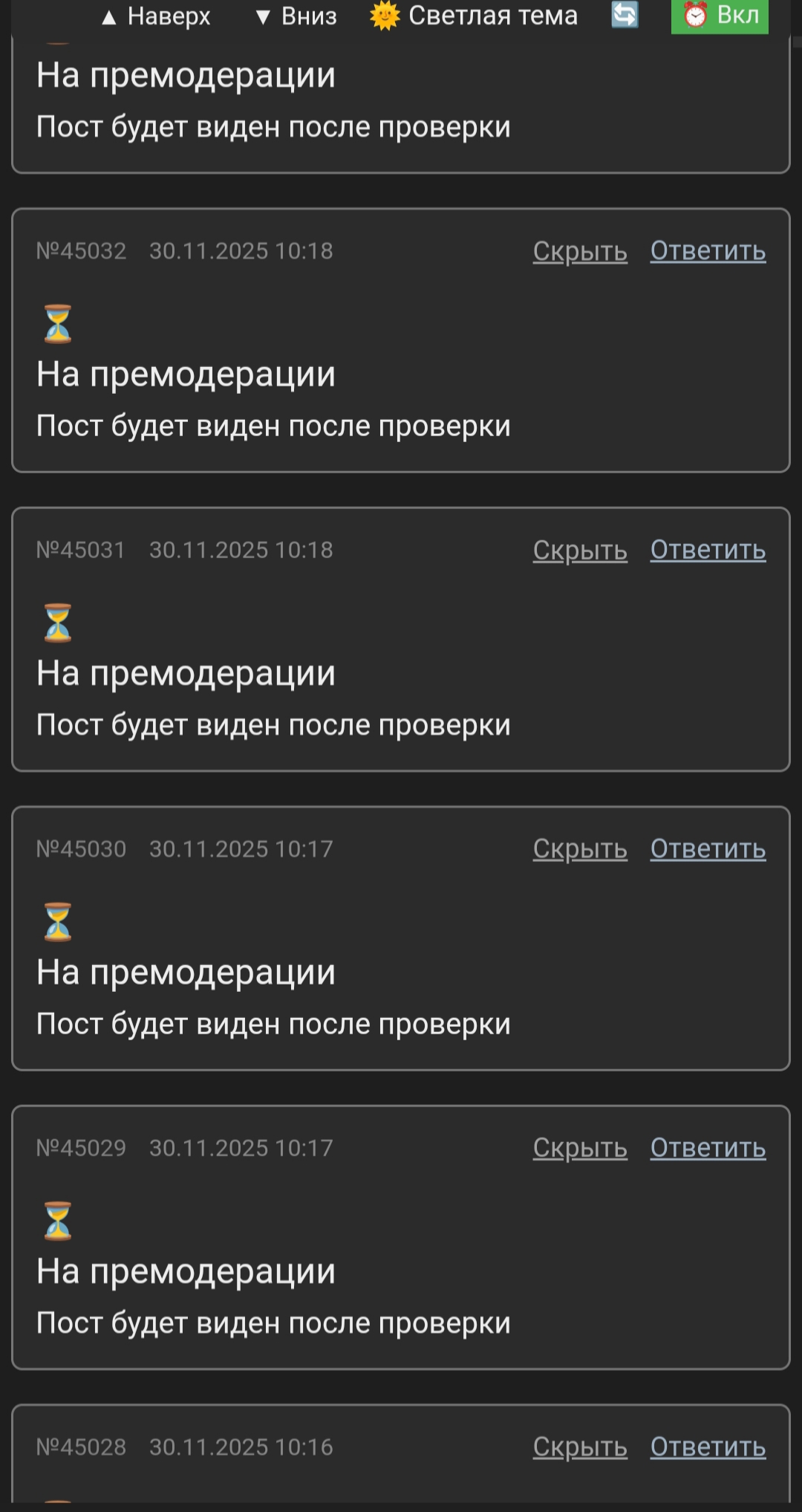 Я бы на месте пердинатыча такую штуку сделал, что постинг скажем за некие условные баллы. Например хочешь запостить это 10 баллов. Но сообщение попадает на премодерацию. 50 баллов срочный постинг - ильнарка как можно быстрее посмотрит и одобрит твой пост лично. 100 баллов - постить сразу.