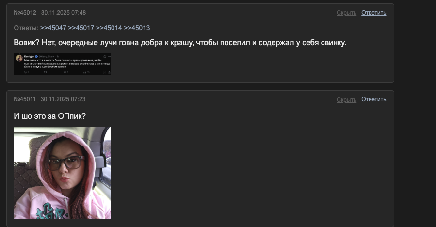 На гомначе хотят сделать премодерацию постов, чтобы оскорбления вшивого сиськастого мальчика не проходили не дай бог (а вдруг он читае). Вщинафил совсем ебнулся там. Съебываю с этой помойки. Уже натуральный совок.