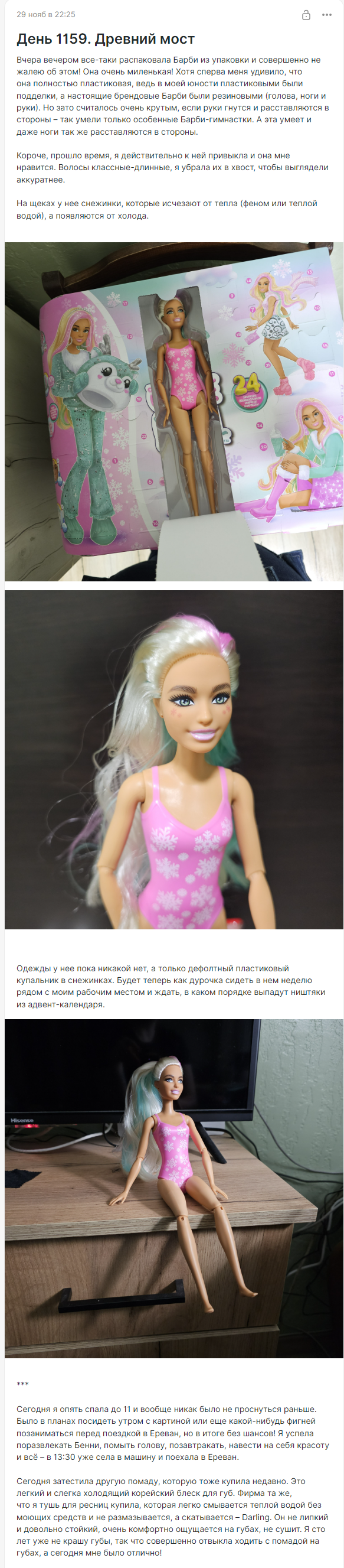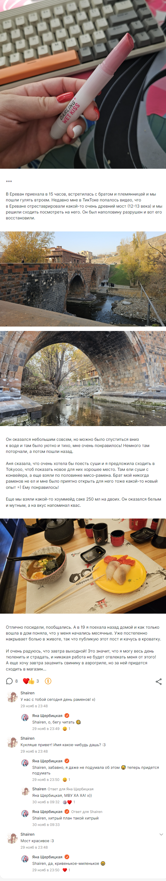 >>25674830 Я до сих пор не понял для кого она это пишет и кому приятно может быть читать про ее месяки? Почему она тогда не написала как по приходу домой мощно захотела какать и поняла что срочно надо покакать. И далее процесс описания покака.