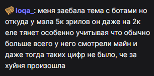 >>25656132 Лос тред ни в какое сравнении не идет с этим тредом. При том что в этом треде в основном только зрилы чмодья, остальные ноунеймы с 3 зрилами. А у ботоводов у каждого из стримерков больше 10к собирается и у собаки и у телки и бывшей телки. Не сходится