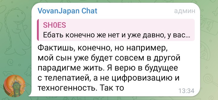 >>26044773 Это походу тот шиз, который в тг у бобы постоянно пишет. Ноги об него вытирайте. >>26044817 Я про него и вбрасывал там изредка говно на вентилятор, пока у него настоящий хейтер не нарисовался, сейчас само пошло, даже постить и напоминать не надо.