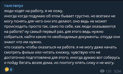 >>26132297 Бегемотики скорее всего хотя пособия получать, поэтому комнатный патриарх отправил махать киркой Орчиху. Безработным пособия не положены уже давно. А возможно она одурела сидеть в комнатке 24/7 и шизить в тележке и попыталась в нормис лайф. Не всем же быть как Боба.