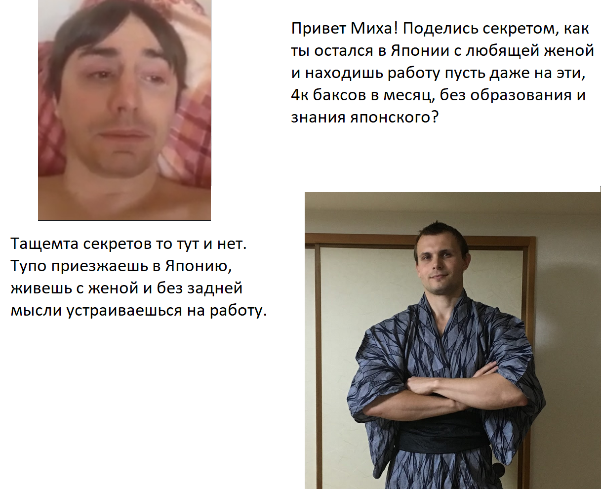 Локация: Епония Вакансия: Любые работники специалисты Обязанности и зарплата: Ничего не делать и все будет Плюсы для кандидата: Умение проквакиваться полоумной хуйней из кроватки, диванная аналитика, переобувание на лету, умение кушать мамины булочки, пиздеть не мешки ворочать
