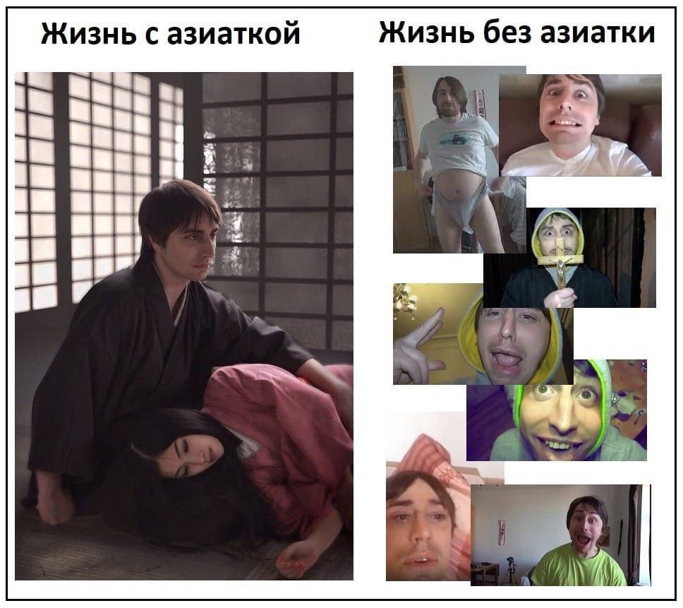 Боба ебался с японкой и русской псевдоняшей. Вова куканил японку блять, приём. Носил её белье, хуй знает что там ещё было. Приём! У бобы охуенная жизнь даже сейчас.