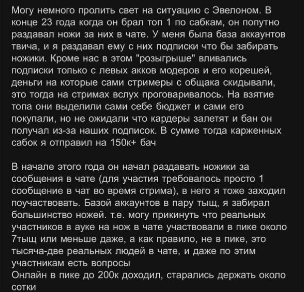 >>25657264 второй мажор по КС стримит, так что в эти цифры ещё можно поверить, но кто смотрит первого вообще хз, чел просто в тачке сидит и пиздит, ЗАВОЗ просто охуеть WW