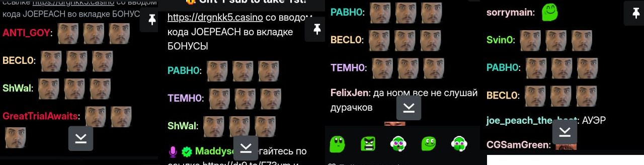 бля так разнылись, будто ваши деньги кто-то пиздит вас даже заходить на стримы никто не просит, варятся там парни сами с ботами своими, баннеры вешают, ролики про себя делают вообще никого не трогают