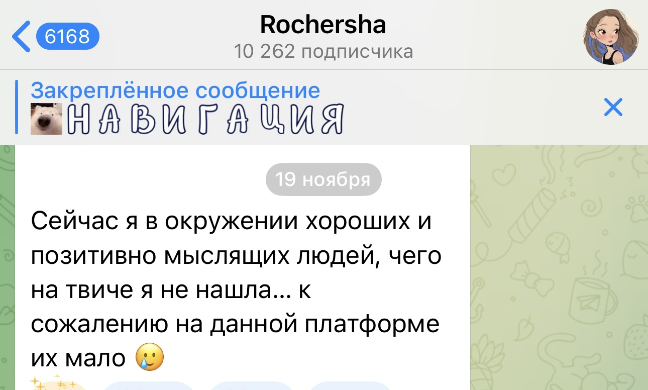 только нетакуськя на гайке может скипать 2-3 дня и нихуя не писать в тг, потом говорить истории как она спала или встречала курьера, которые оказывались пиздежом