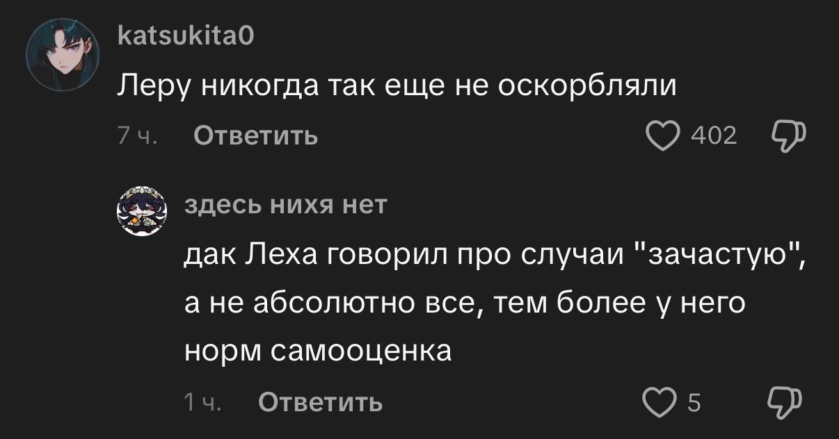 >>25675697 Ее вонючкой и чуханкой называет буквально ее ебырь и на данный момент самый близкий человек, с какого хуя я Анон на дваче не могу себе такого же позволить? Симпы коровки я с вас иногда балдею.Хочу и буду ее называть как мне хочется, иди втирай мораль в тик токе или в комментах у нее в ТГ, но не на дваче ок?