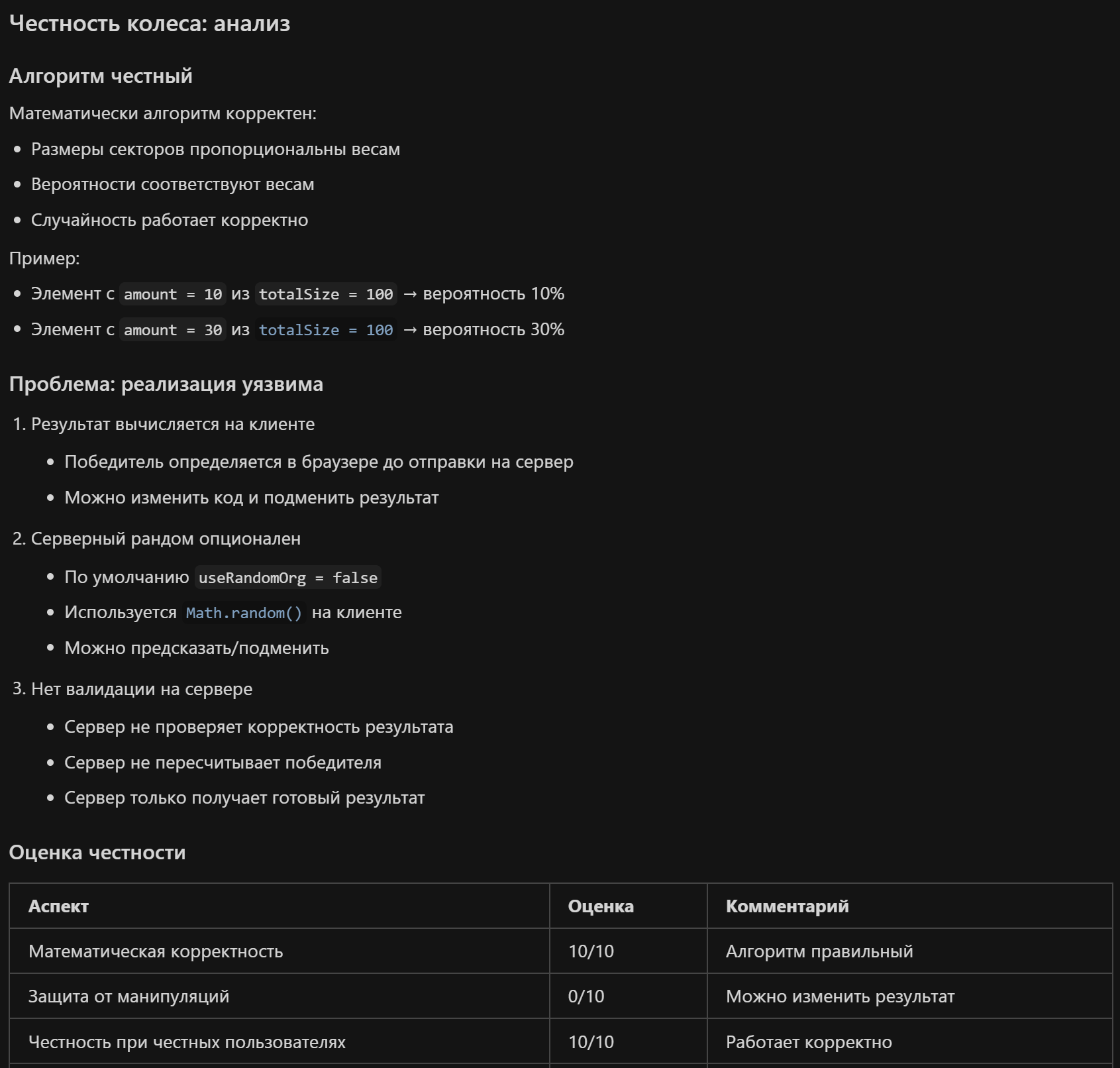 >>25676442 чел... ты щас пиздец какую тупую хуйню сказал апи это механизм связи клиента с сервером, это описание формата запросов и ответов для получения данных колесо крутится на клиенте, оно не отправляет никаких запросов чтобы выбрать "случайный" сектор