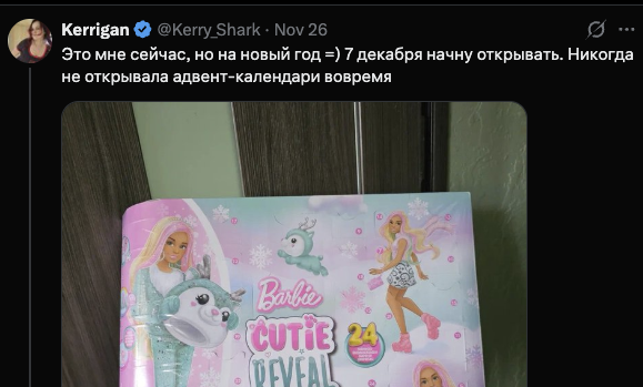 Так смешно от этой хуйни: чем начинают в уши ссать то она бежит и покупает: пароварку (помнит кто легендарный суп из куриных крыльев?), домики из лего, аэрогриль (где она херачит картофан тазами), дегидратор и теперь вот БАРБИ.