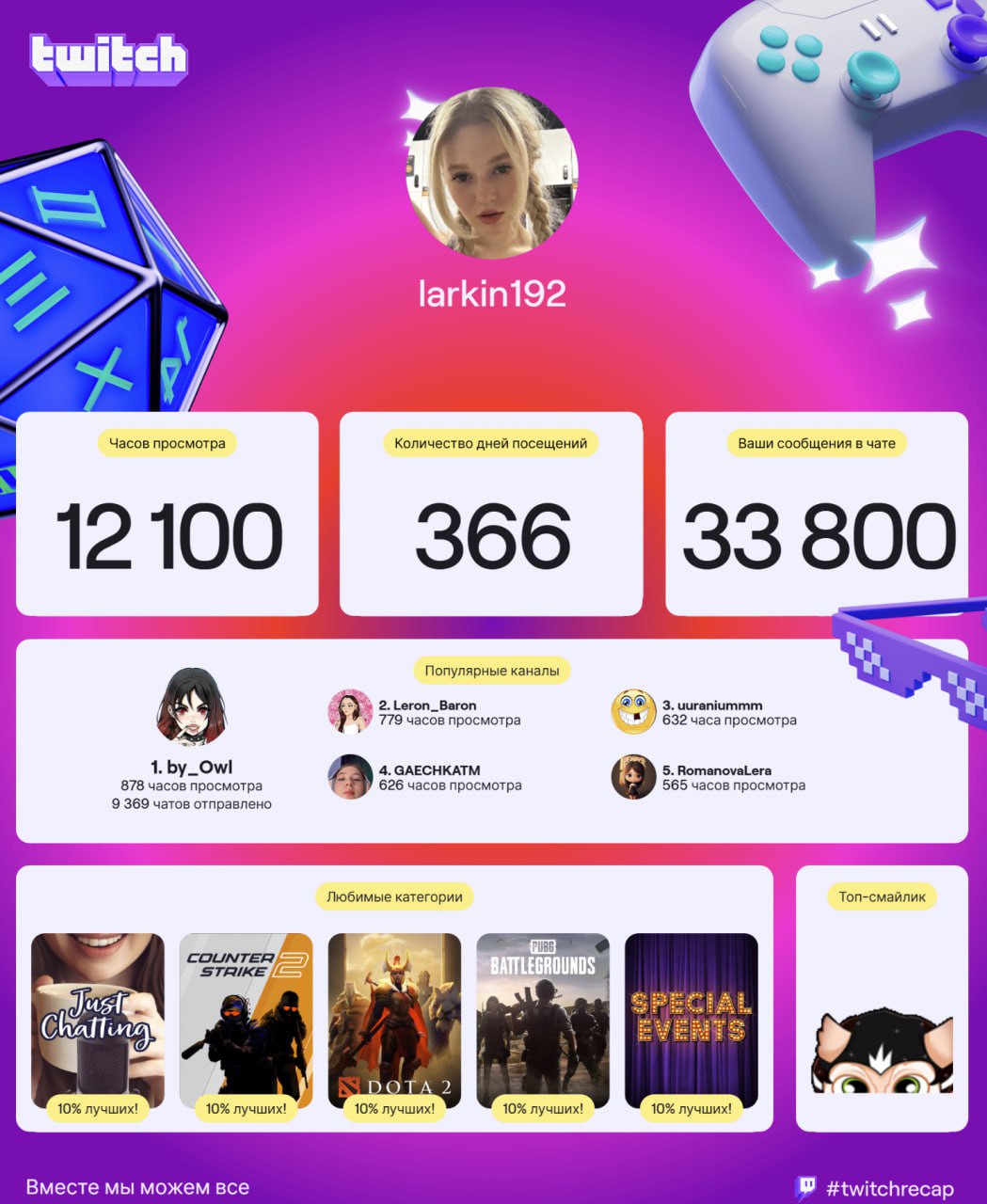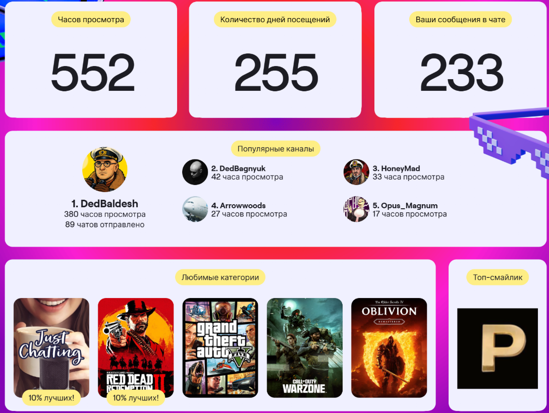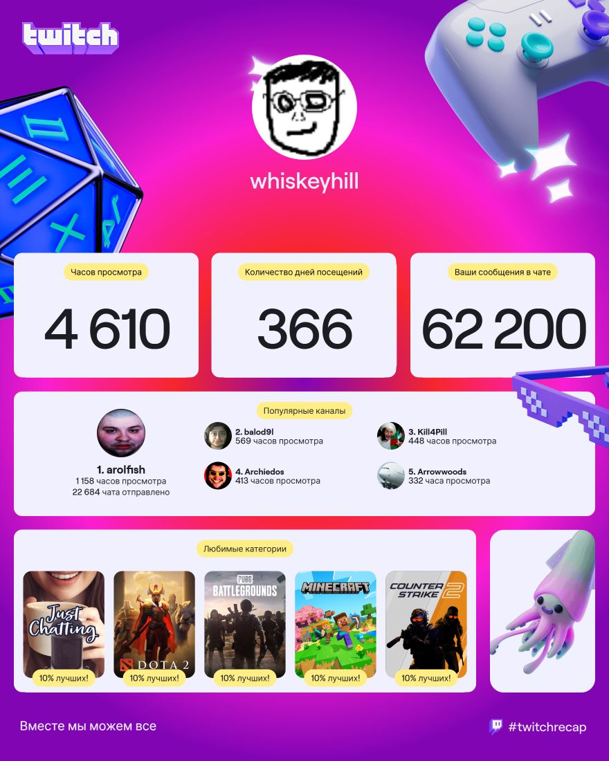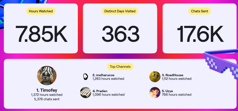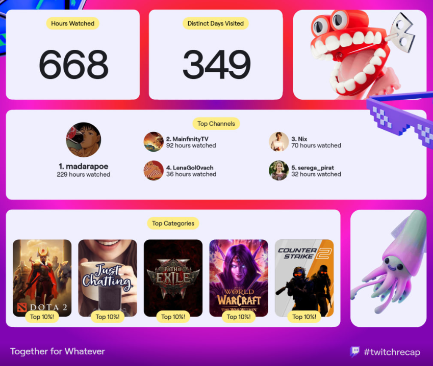 Я на твиче ток Илюху Мэда смотрю. Пару раз заходил к дотерам (дедам из 2012-го), чекнуть не сдохли ли они и прадена смотрел минут 20, а округлили до часа почему-то.