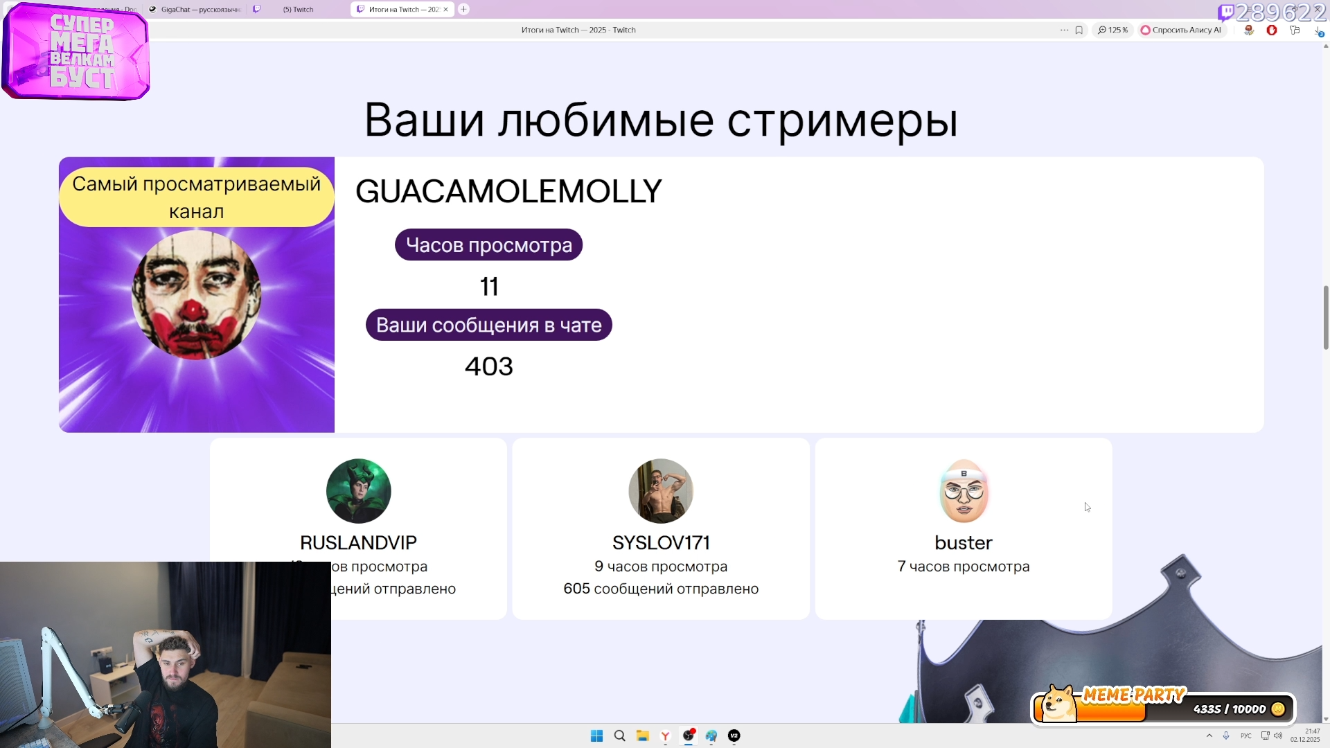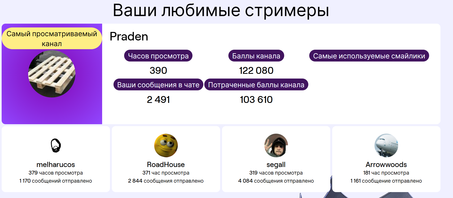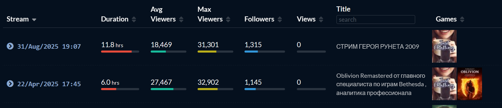 Откуда у вас у Ильи Мэда 80 часов просмотра если у него на твиче было 2 стрима за 2025 - обла весной и фурри-стрим в сентябре? Вы крутите себе время просмотра?