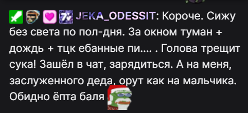 >>25696165 (OP) Бля иногда сижу тут чисто по рофлу, мемчики палю, видосики, мясо блядское. А потом понимаю, что тут реально кто то стримы эти смотрит и следит за этим. А потом еще вылазят, которые собираются новый год со стримером отмечать. Сразу так неприятно становится. Я думал тут тоже все по рофлу.