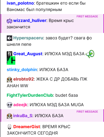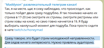 Так, я на месте, щас я сижу наблюдаю, что происходит, как только пойдет движ сразу подрублю. Я так понимаю начало их стрима в 17-20 (не смотрите их стримы, смотрите рестримы или стрим ховы на кике), но само говно начнется в 19. Я буду выбирать наилучший момент для подруба. Пока просто сидите в чате twitch.tv/honeymad